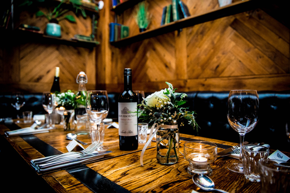 After a beautiful ceremony and some group photographs we headed to Harild & Sons, a gorgeous little cocktail bar located in the city. With its rustic industrial feel, complete with a copper bar, fairy lights and plants it complimented their winter wedding vibe perfectly. They also had little jars of white flowers and candles adorning the tables, matching all the bouquets (Like I actually wasn't going to mention the flowers! Insert eye roll emoji) Niamh's dress was also absolutely stunning, a slimline gown with lots of beading and embroidery. The whole bridal party also had faux fur stoles fastened little crystal brooches.